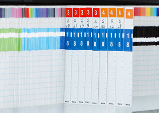 カラーファイリングの導入で、同種の書類(ドキュメント)が数百部以上から十万部ものに対して、能率的で安全な管理が可能になります。